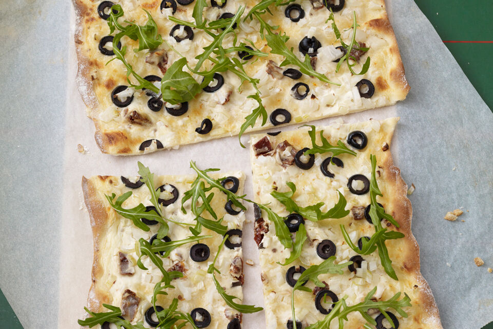 In der REWE Rezeptwelt findest du leichte Flammkuchen-Rezepte von herzhaft bis süß von klassisch bis ausgefallen. Ein Küchentuch auf einen großen Teller legen aus der Masse kleine Kugeln formen und an jeder Teller Ecke einen legen. Vegetarischer Flammkuchen mit Birne Kürbis und Ziegenkäse 22112021 - 1409 Uhr.